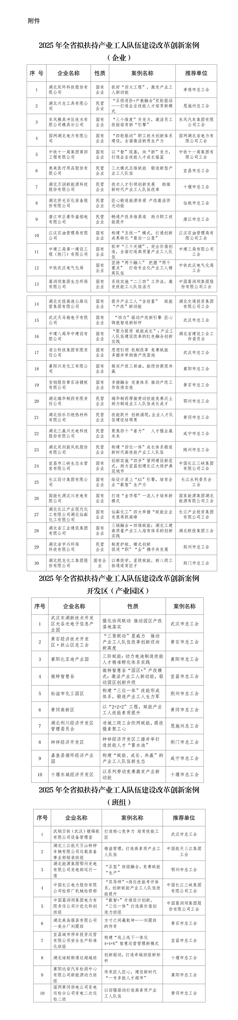 附件:2025年全省拟扶持产业工人队伍建设改革创新案例名单