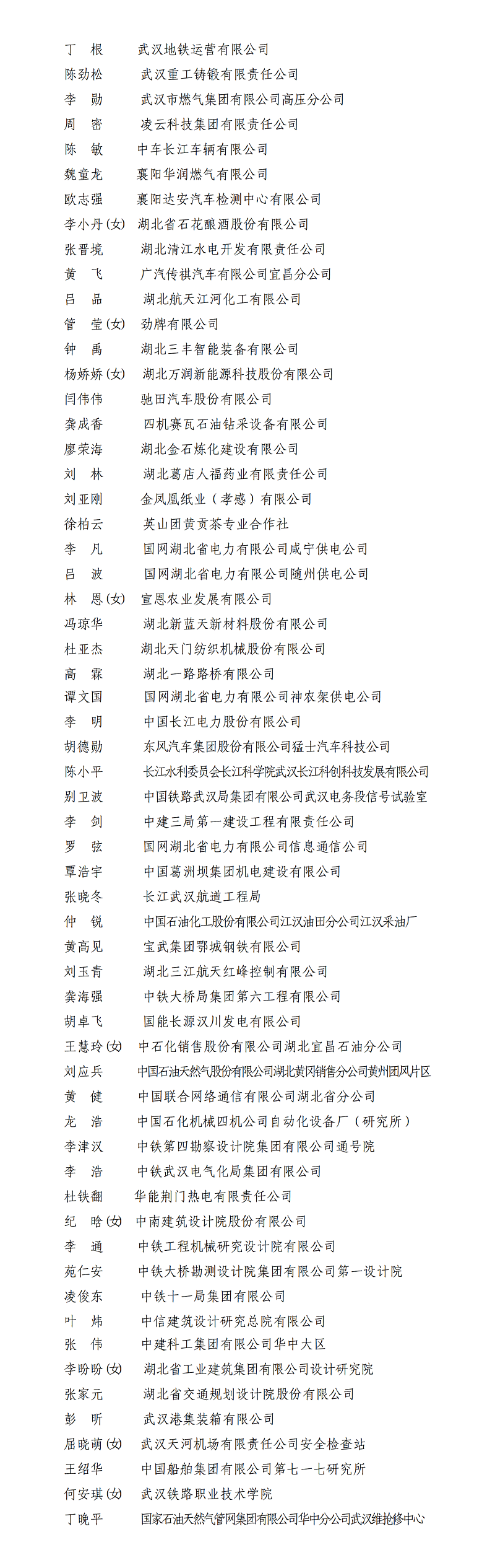 2025年荆楚工匠人才培养对象名单(60名)