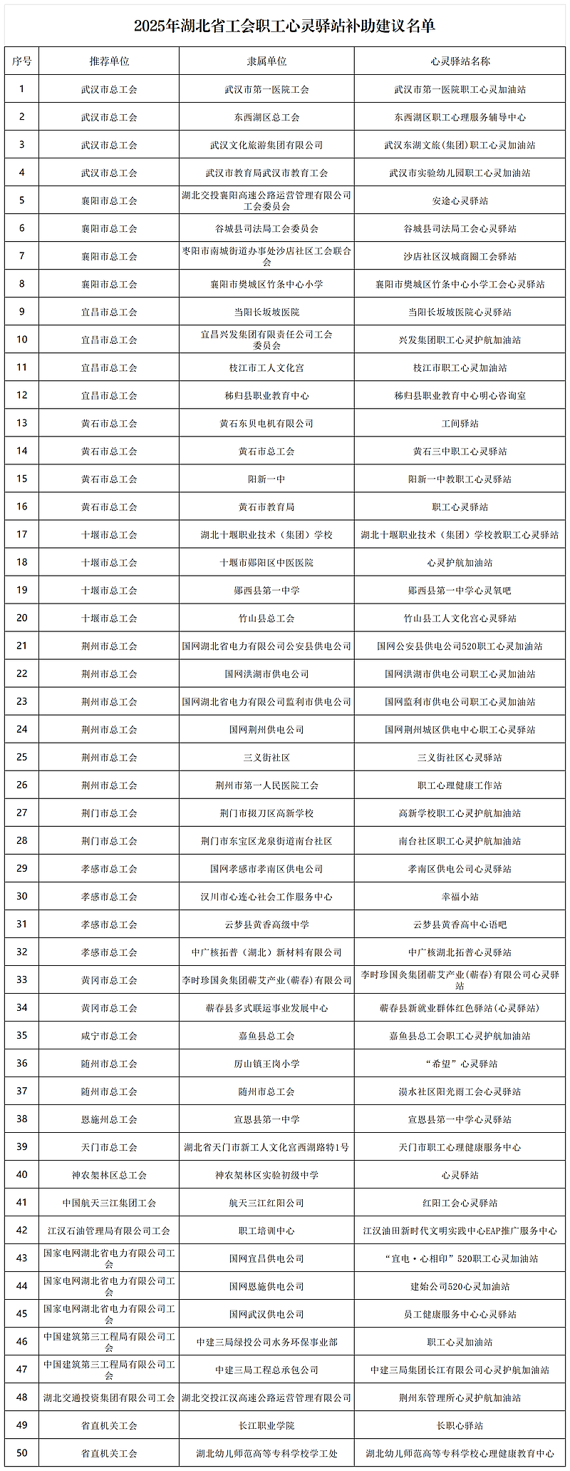 3.2025年湖北省工会职工心灵驿站补助建议名单。