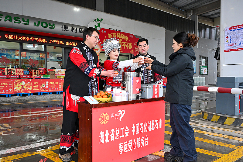 中国石化湖北石油充分发挥遍布全省的加能站平台优势,联合湖北省总工会在高速、国省道等春运重点保供站设立一百余个春运服务台。