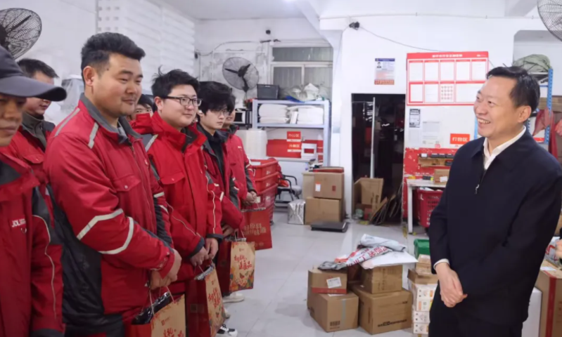 在鄂州,胡甲文深入电力服务站、环卫作业点、工会驿站等服务站点,看望慰问节日期间坚守岗位的电力职工、环卫工人,以及外卖骑手、快递员、网约车司机等一线职工,为他们送上精心准备的慰问礼包和新春祝福。