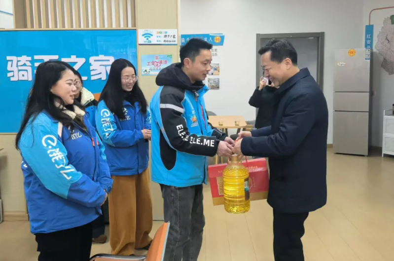 在黄冈市红安县,陈惠霞走访了骑手之家工会驿站、中航环卫有限公司,并入户慰问困难职工。在骑手之家工会驿站,陈惠霞与快递小哥、外卖骑手等新就业形态劳动者面对面交谈并将精心准备的暖“新”慰问礼包递到他们手中,叮嘱他们在寒冬时节要加强防寒保暖,注意交通安全。他强调,各级工会要持续依托工会驿站等阵地,在春节期间为新就业形态劳动者提供更多可感可知、可达可得的关爱和暖心服务,让他们真正感受到工会“娘家人”的关心和关怀。