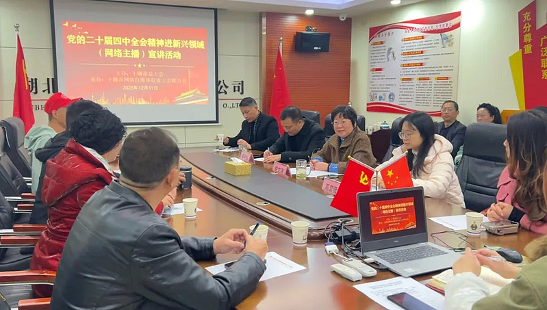 为推动党的二十届四中全会精神在新兴领域走深走实,加强网络主播群体思想引领,12月11日,由十堰市总工会主办、市网络自媒体行业工会联合会承办的党的二十届四中全会精神进新兴领域(自媒体从业人员)宣讲活动,在湖北恒正建设工程有限公司举行,全市近30名自媒体从业人员参会。