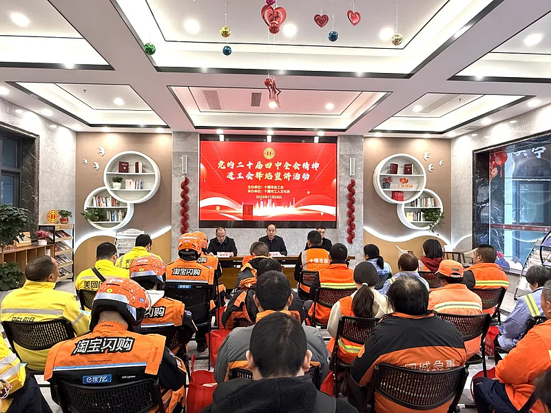 11月28日上午,市总工会开展了一场别开生面的特色宣讲活动,把党的二十届四中全会精神宣讲与专题普法有机融合,将法治关怀精准送至每一位户外劳动者的心灵深处。