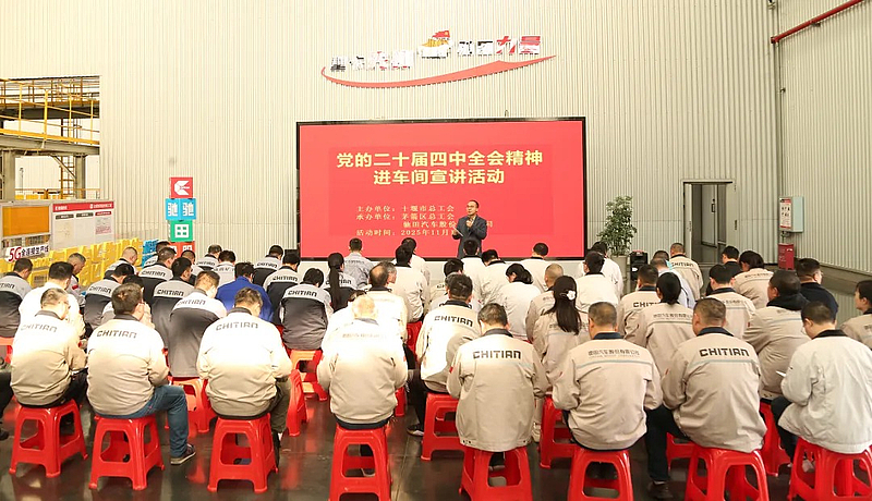 11月14日下午,由十堰市总工会主办的党的二十届四中全会精神进车间宣讲活动在驰田汽车股份有限公司生产车间举行,把党的创新理论宣讲直接送到生产一线。60余名一线产业工人在熟悉的工作场景中聆听党的理论,感悟思想伟力。