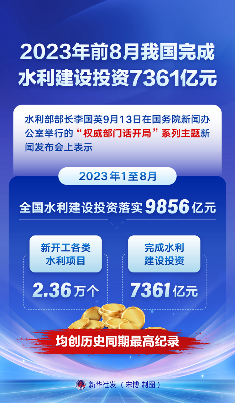 水利部部长李国英13日在国务院新闻办公室举行的“权威部门话开局”系列主题新闻发布会上表示,今年1至8月,全国水利建设投资落实9856亿元,新开工各类水利项目2.36万个,完成水利建设投资7361亿元,均创历史同期最高纪录。