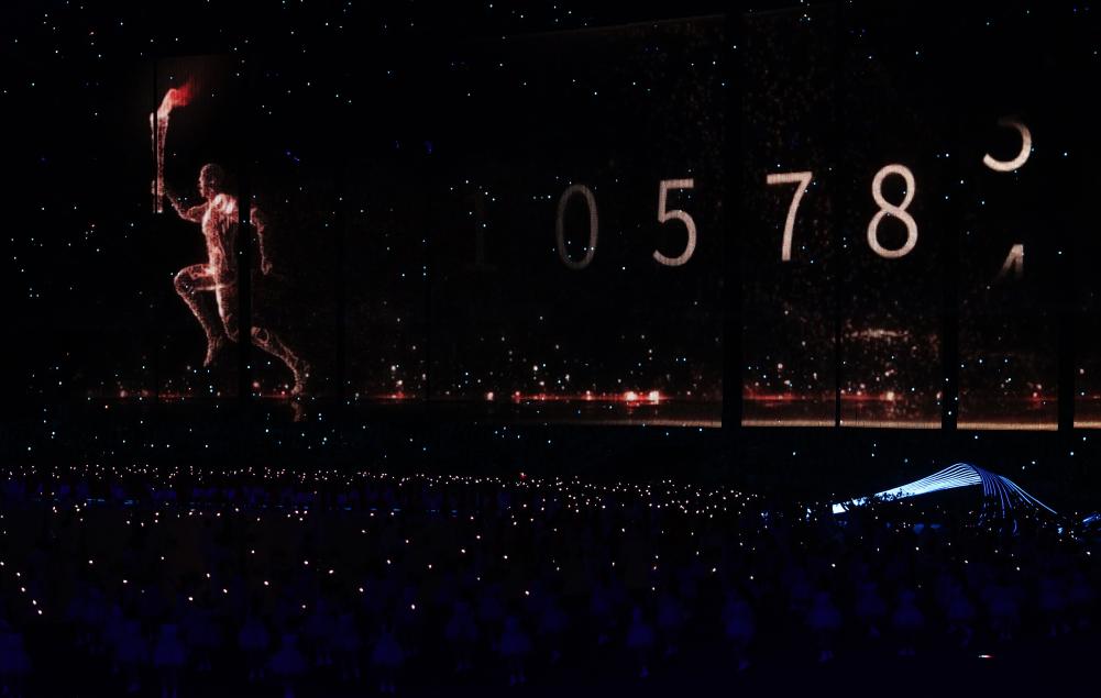 9月23日,数字火炬手在开幕式上传递火炬。新华社记者 朱峥 摄