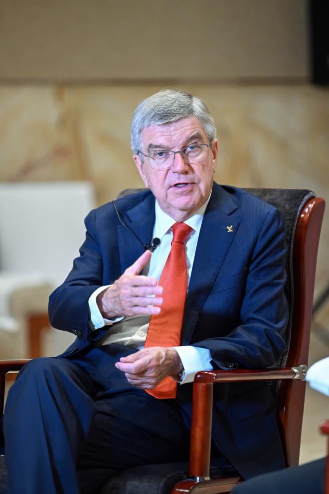 9月22日,国际奥委会主席巴赫在杭州接受新华社记者专访。新华社记者 陈晔华 摄