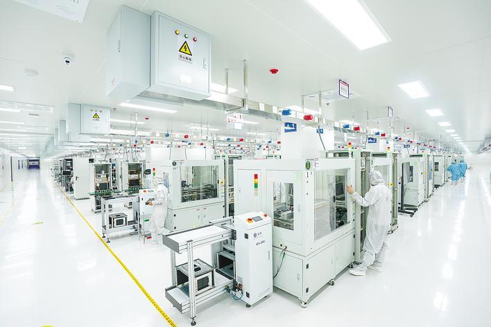 华工科技光电子信息产业研创园洁净厂房,正在生产高速光模块。 (湖北日报全媒记者 魏铼 摄)